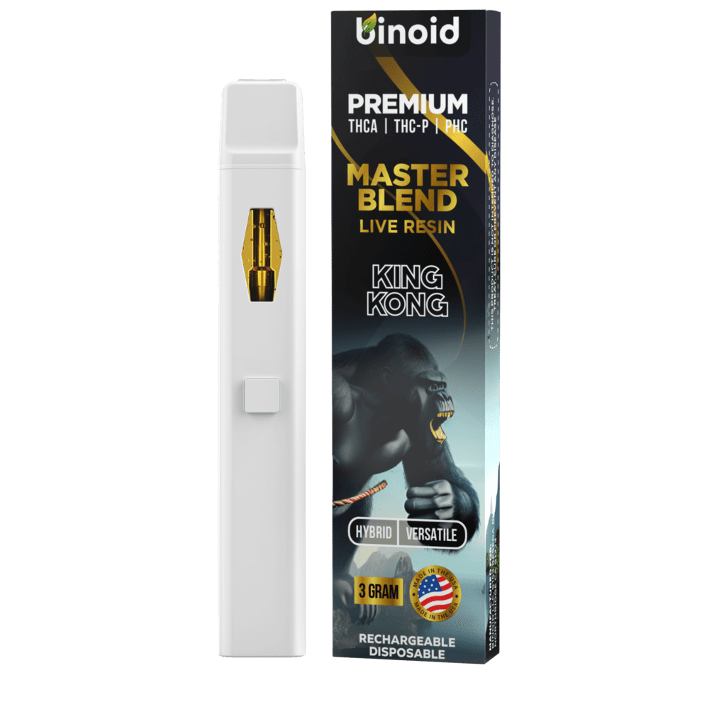 Our Master Blend live resin 3 gram disposable is one of the first 3 gram blends on the market. This innovative Master Blend combines premium THCA, THC-P and PHC distillate, paired with live resin King Kong and Godzilla Grape strains to give a superior and powerful experience.